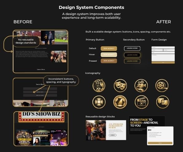 Introduced a consistent color system (Gold / Deep Charcoal) to elevate brand perception